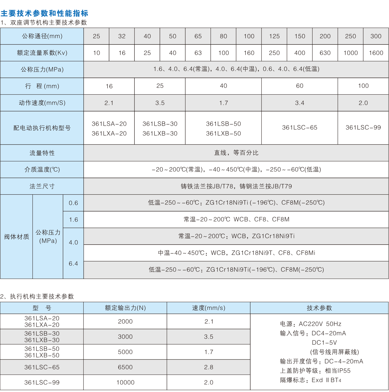ZDLN型电子式电动双座调节阀是由3610L型电子式电动执行机构和双座调节机构组成,电动执行机构内有同服系统,无须另配伺服放大器,有输入220V(AC)电源及4~20mA(DC)信号,即可控制阀门开度,从而达到对介质的压力、温度、流量、液位等工艺参数的连续调节。
