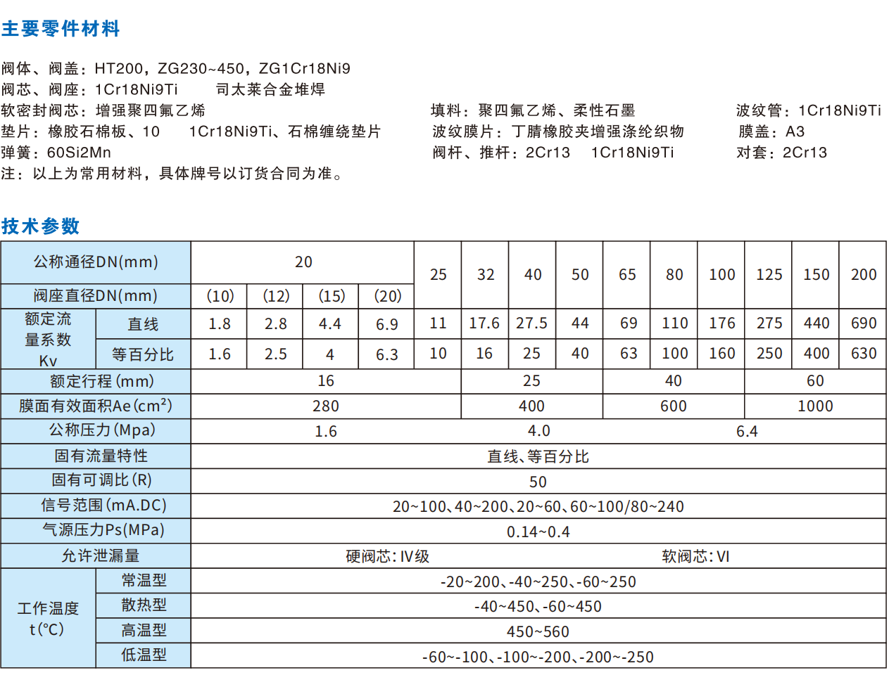 · 可调范围大,固有可调比50,流量特性有直线和等百分比。